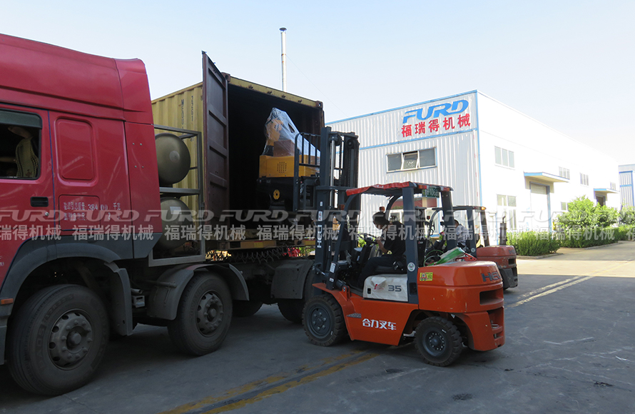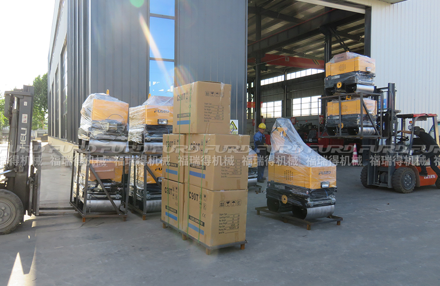 福瑞得機(jī)械12臺(tái)手扶雙鋼輪壓路機(jī)打包裝柜出口澳大利亞