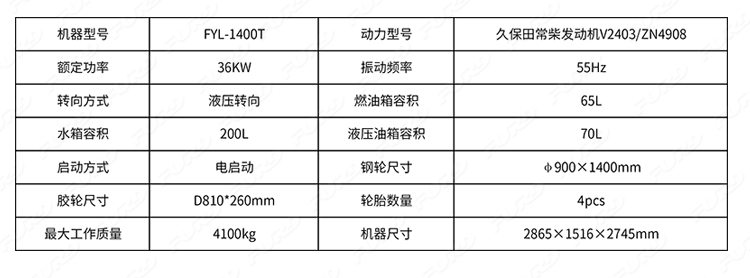 FYL-1400T為橡膠輪胎振動(dòng)壓路機(jī),該壓路機(jī)前有鋼輪,后有橡膠輪,結(jié)合鋼輪和輪胎壓路機(jī)的優(yōu)點(diǎn),具有更高的工作效率。