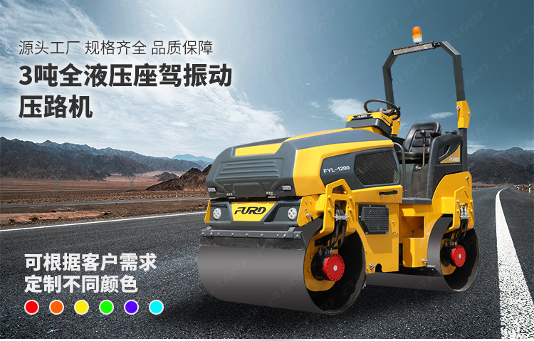 FYL-1200是3噸振動(dòng)壓路機(jī),采用全液壓傳動(dòng),雙鼓液壓驅(qū)動(dòng),液壓轉(zhuǎn)向和液壓振動(dòng)。雙鼓振動(dòng)壓路機(jī)